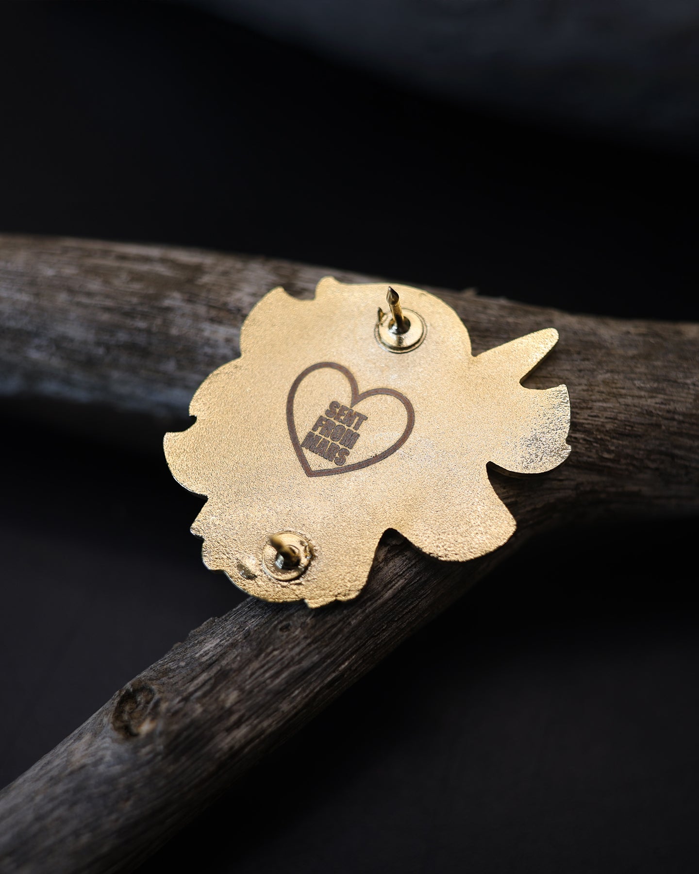 🌟 1.5” hard enamel pin with shimmering gold-plated details.