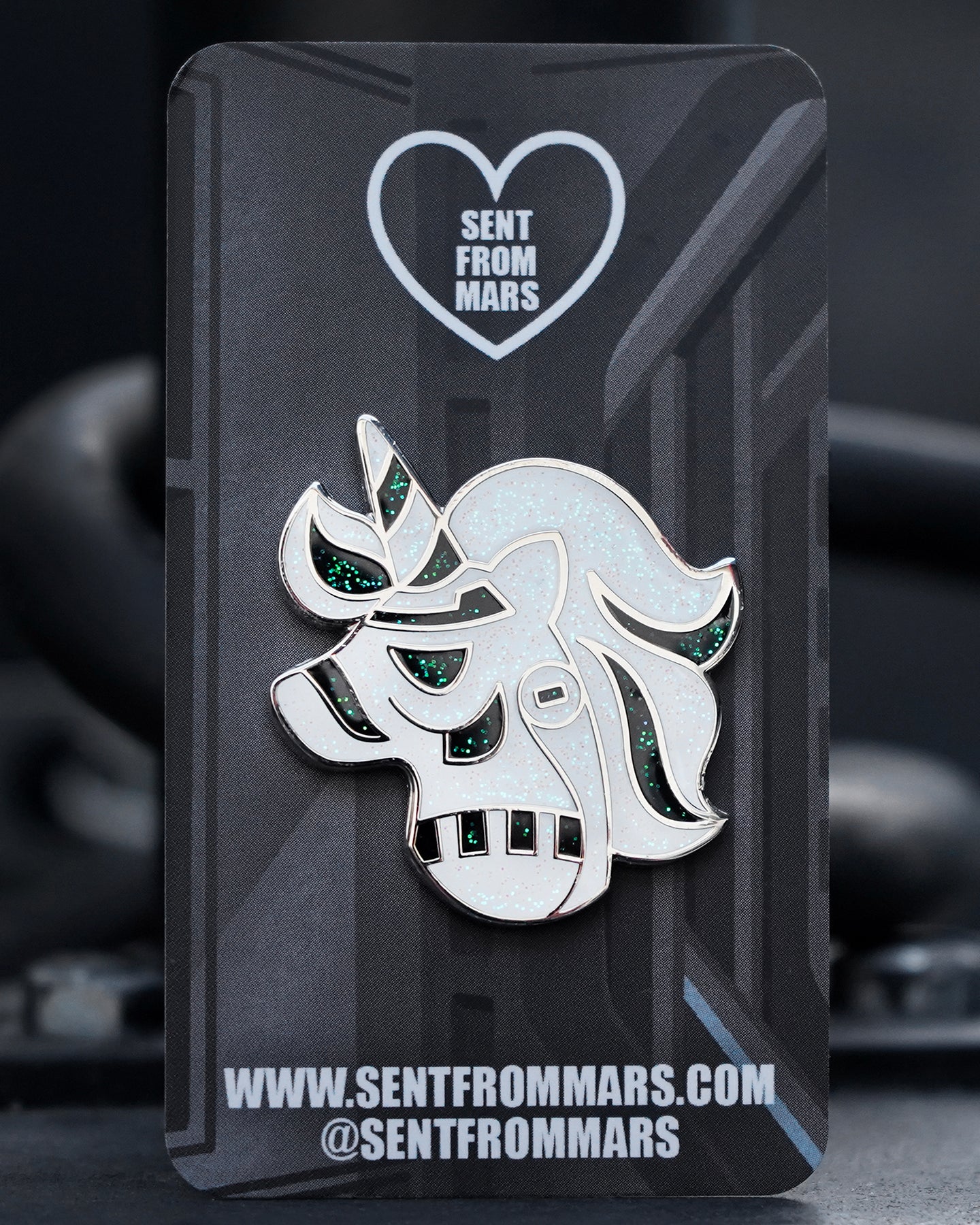 The Imperial Trooper Unicorn is a symbol of resilience, precision, and a little bit of magic. Inspired by legendary interstellar forces, this 1.5” hard enamel pin features sleek silver details, a polished finish, and a subtle glitter accent to bring a spark of the cosmos to your collection.